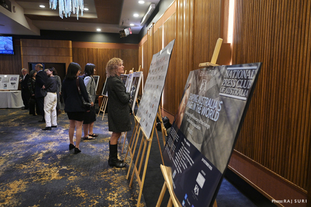 The evening featured an exhibition of the work of the foreign correspondents in Australia across television, radio, print and digital platforms over the past four decades. Some of the most relevant stories were: exodus of Britains for new life in Australia, the Stolen Generation, Sydney Olympic Games, rivalry between Julia Gillard and Kevin Rudd, Lindt Cafe terrorist attack, the backpackers murders by Ivan Milat, bush fires in 2019/2020, Novak Djokovic deportation in 2022, the Voic Referendum 2023, the release of Julian Assange and more.