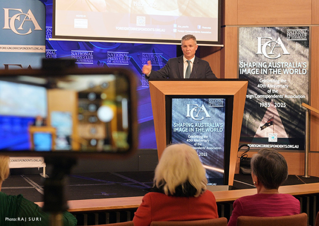 Canberra, 30 October 2025 – The Foreign Correspondents’ Association Australia & South Pacific (FCA), in collaboration with the National Press Club of Australia (NPC), celebrated on Wednesday 29th October its 40th anniversary with a special reception and exhibition honouring four decades of international journalism.