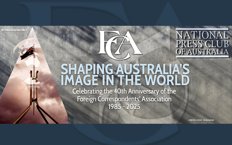 The Foreign Correspondents’ Association [Australia & South Pacific] in collaboration with The National Press Club will be holding a reception to celebrate the 40th anniversary of the FCA.